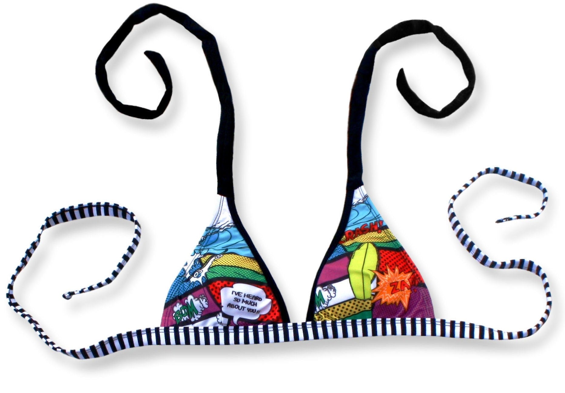 Express your unique style and embrace your confidence with this Comic Chic Triangle Top Bikini. Designed to make a statement and turn heads with its distinctive blend of comic-inspired art and checkerboard charm, it's a celebration of individuality and a fun addition to your swimwear collection.