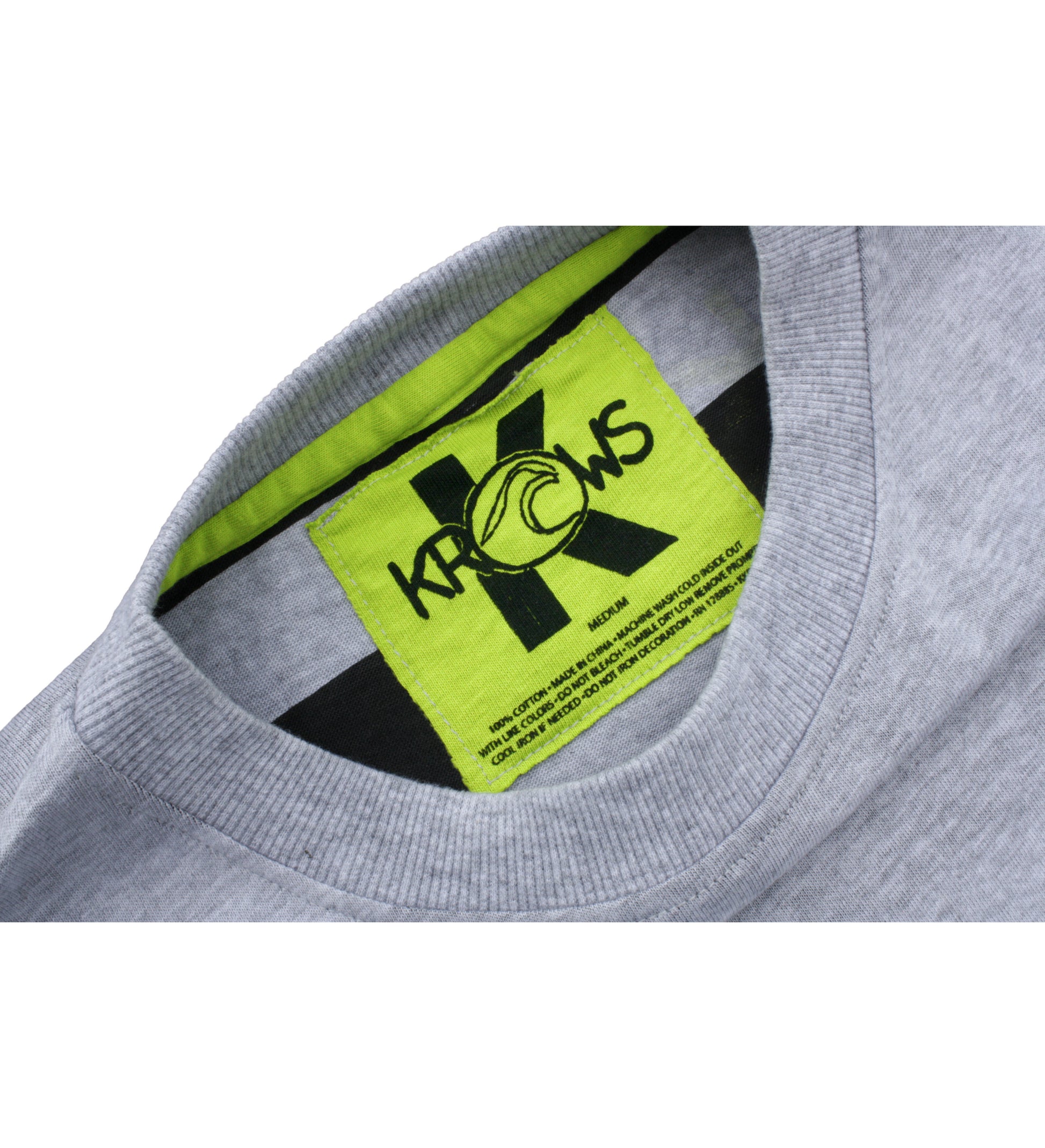 The signature Krow takes center stage, seamlessly printed on one side from front to back, making a bold statement that reflects your individuality. The inside stripes printed for a faded outside look is a distinctive feature that adds a layer of vintage charm, giving your attire a timeless and lived-in aesthetic. Whether you're out on the town or enjoying a casual day, these shirts effortlessly blend comfort and style.