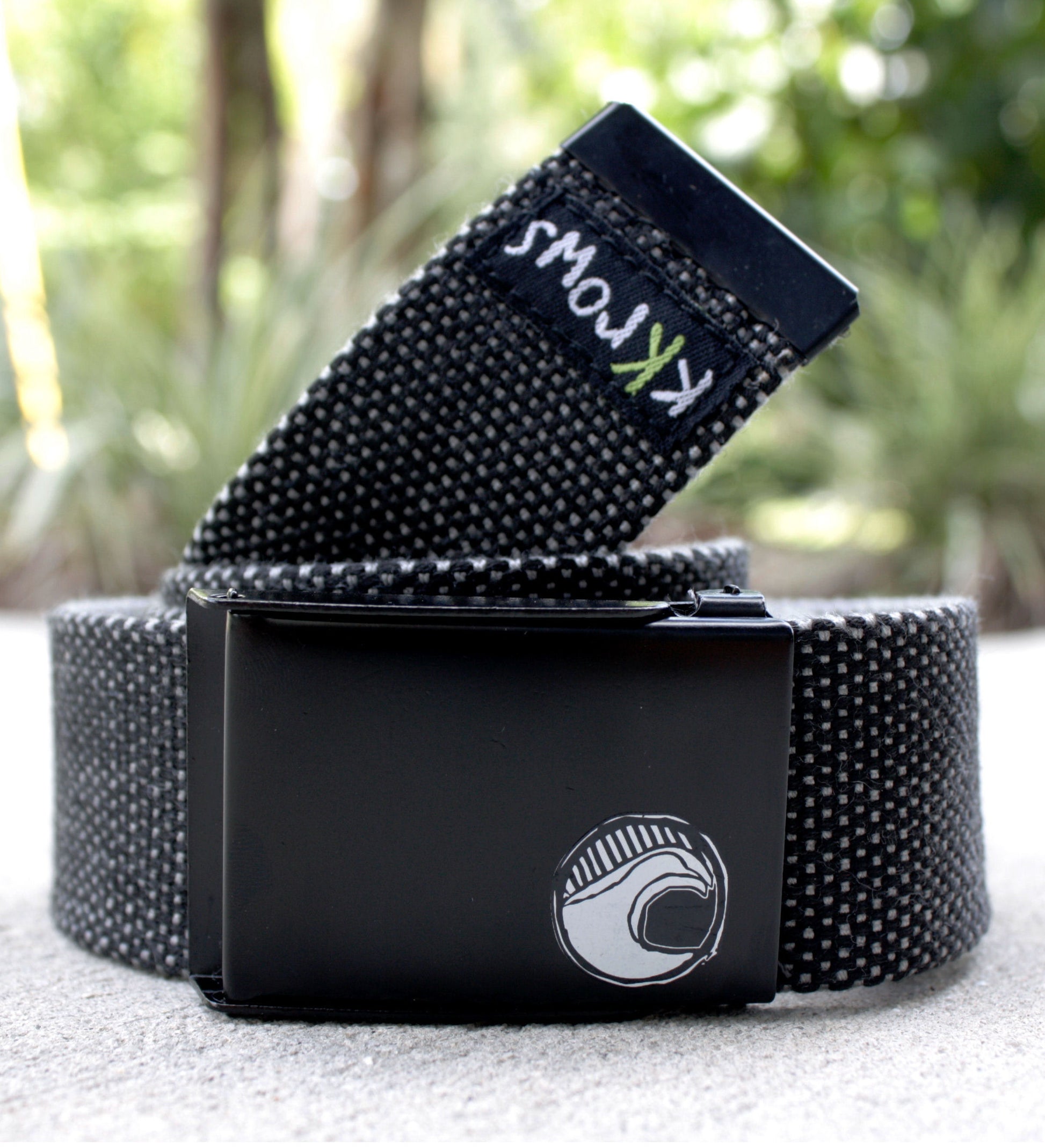 Experience the ultimate in versatility and style with the kKrows Slim Tight Belt – an adjustable accessory crafted from reversible charcoal/grey woven polyester that seamlessly blends fashion and function. The black enamel steel clamp buckle and tip coupled with the printed logo and stitched label showcase the iconic kKrows branding, emphasizing a commitment to both quality and design.